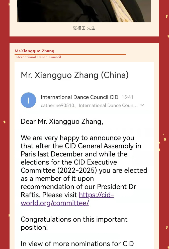 荣任CID执委——张相国备受教科文组织国际舞蹈委员会青睐