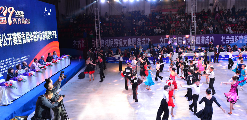 五月的鹤城鲜花盛开迎来八方来宾,丹顶鹤的故乡为盛会欢呼。在喜迎建国70周年即将到来的时候,在五一小长假期间,有来自俄罗斯、白俄罗斯、格鲁吉亚、乌克兰、爱美尼亚等国家和地区的60多支代表队千余名“武林高手”相聚齐齐哈尔车辆厂体育馆,参加由齐齐哈尔日报报业集团、牡丹江市远东体育舞蹈职业学校、北京华嘉舞蹈学院、齐齐哈尔市远东舞蹈对外交流联合会主办的,远东国标舞舞有限责任公司黑龙江省分公司承办的,并得到远东(YDC)大力支持的“中国·齐齐哈尔第十二届摩登舞、拉丁舞公开赛暨首届‘华嘉杯’体育舞蹈公开赛。