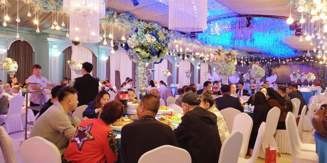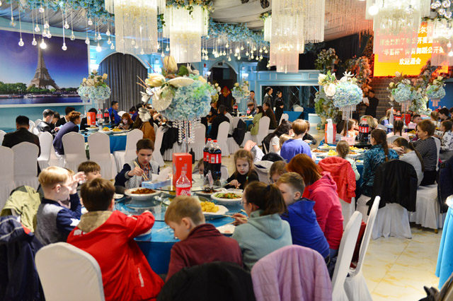 承办方为了迎接和感谢八方宾客,赛前在鹤城的玖号食府举办了招待酒会,120多人参加,赛后又举行答谢酒会,国外嘉宾、竞赛、评审及工作员又是140多人参会。酒会上大家谈笑风生,频频举杯,祝贺齐齐哈尔第十二届摩登舞拉丁舞公开赛暨首届“华嘉杯”体育舞蹈公开赛成功举办,感谢承办方远东国标舞有限责任公司黑龙江分公司总经理张相春先生的热情款待。