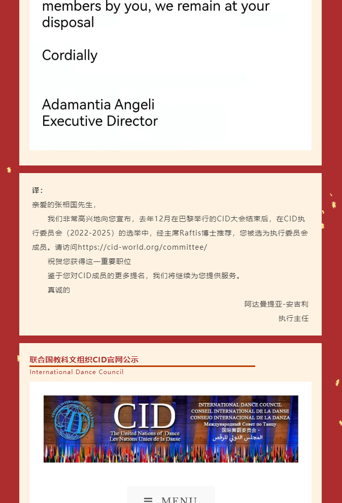 荣任CID执委——张相国备受教科文组织国际舞蹈委员会青睐