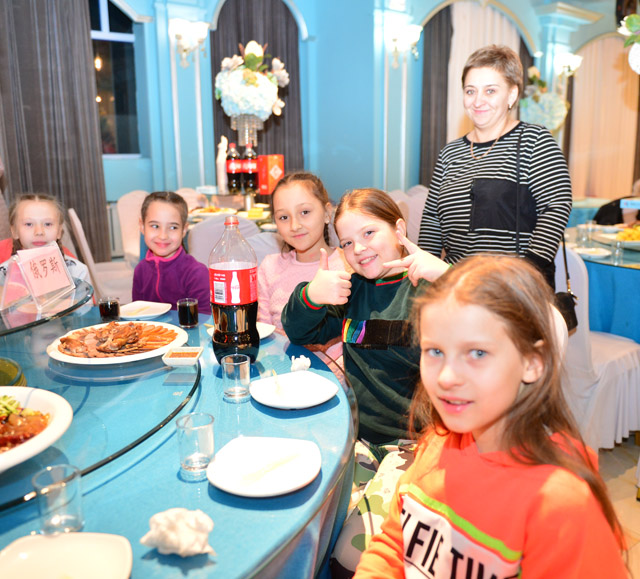 60多位俄罗斯小选手举队牌