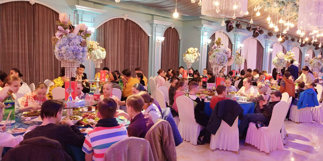 承办方为了迎接和感谢八方宾客,赛前在鹤城的玖号食府举办了招待酒会,120多人参加,赛后又举行答谢酒会,国外嘉宾、竞赛、评审及工作员又是140多人参会。酒会上大家谈笑风生,频频举杯,祝贺齐齐哈尔第十二届摩登舞拉丁舞公开赛暨首届“华嘉杯”体育舞蹈公开赛成功举办,感谢承办方远东国标舞有限责任公司黑龙江分公司总经理张相春先生的热情款待。